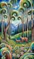 Enchanted Forest in Cubist Style: Deer Amidst Spiraling Trees
