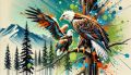 Vibrant Artistry of Colorado Eagles Amidst Mountainous Pine Trees