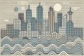 Abstract Cubist Interpretation of Denver's Skyline with Native American Motifs