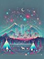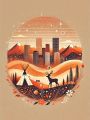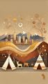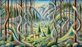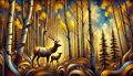 Enchanting Cubist Forest Landscape with Deer and Teepees in Denver