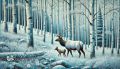 Enchanted Winter in Colorado: Cubist Elk amidst Snowy Aspen Grove