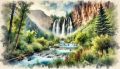 Captivating Watercolor of Rifle Falls State Park in Impressionistic Style
