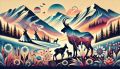 Surreal Mountain Landscape Featuring Colorado Wildlife and Night Sky