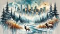 Harmonious Blend of Urban Denver and Snowy Wildlife Landscape