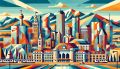 Colorful Cubist-Inspired Depiction of Denver's Iconic Landmarks