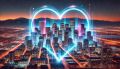 Radiant Neon Heart Encompassing Denver's Skyline at Night