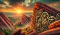 Steampunk Dawn at Red Rocks: Gears, Pipes, and Sunrise Glory