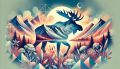 Mystical Colorado Nightscape with Moose Silhouette and Mountain Vistas