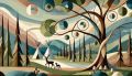 Enchanted Denver Forest: A Cubist-Inspired Vision with a Wildlife Embrace