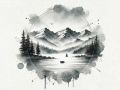 Abstract Ink Wash: A Tranquil Mountain Scene Captured Exquisitely