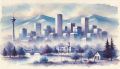Watercolor Whisper of Denver: A Serene Interpretation of Urban Beauty